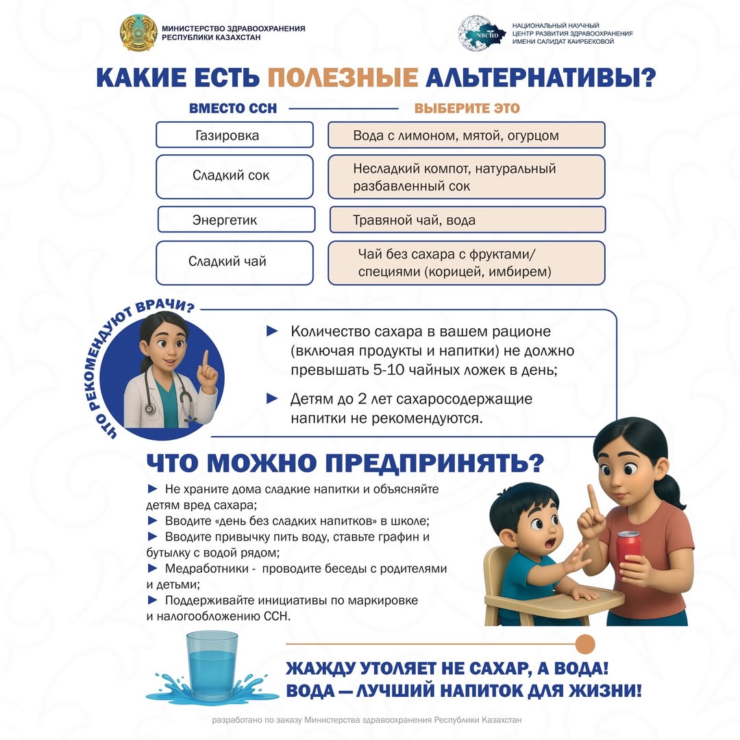 Сладкие напитки содержат большое количество сахара и наносят вред здоровью. Их частое употребление может привести к ожирению, кариесу, диабету и заболеваниям сердца. Очень важно с детства прививать детям правильные привычки: приучать пить чистую воду и ограничивать сладкие напитки. Это вклад в их будущее здоровье.
