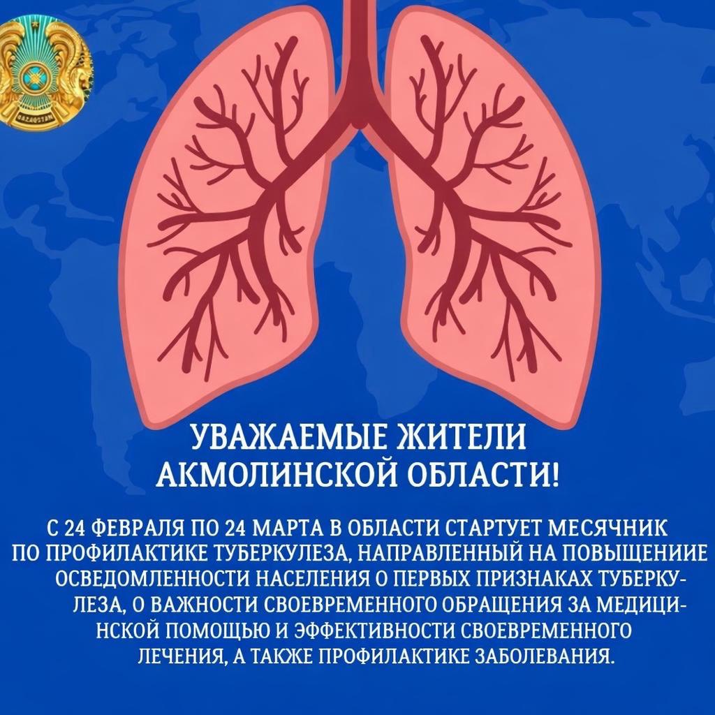 ✅Сегодня 24 февраля, стартует месячник по туберкулёзу! Под девизом Иә! Біз туберкулезді жеңеміз! Қазақстанның көшбасшылығымен, инновация және халықтың күшімен!